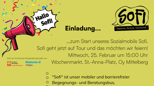 "Sofi" ist unser mobiler und barrierefreier Begegnungs- und Beratungsbus, mit welchem wir direkt zu Ihnen in die Gemeinde kommen!